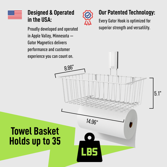 Utility Magnetic Basket with Towel Bar - Holds up to 35 lbs