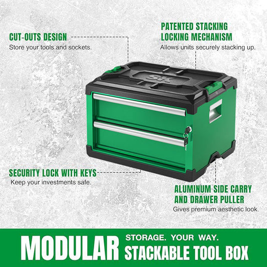Modular Stackable Storage Tool Box, 2-Drawer Steel Box