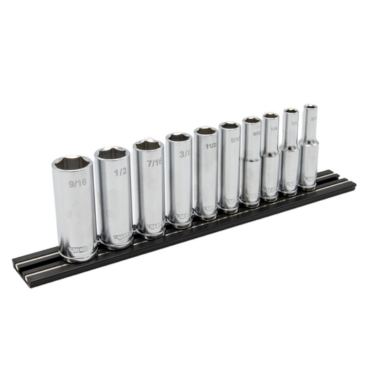 10 PC. 1/4'' DR. DEEP SAE SOCKET SET W/ BLACK 8” MAGRAIL - SMS400 SUBSET