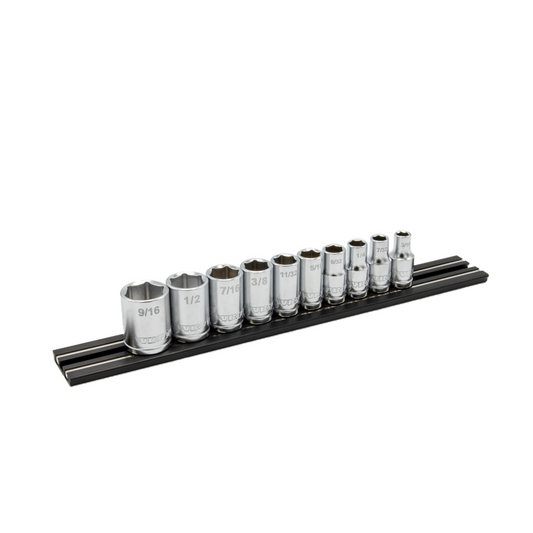 10 PC. 1/4'' DR. SAE SOCKET SET W/ BLACK 8" MAGRAIL - SMS400 SUBSET