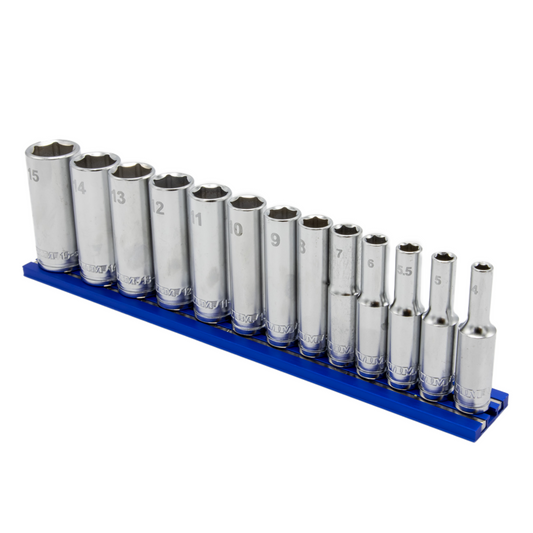 13 PC. 1/4'' DR. DEEP METRIC SOCKET SET W/ BLUE 8" MAGRAIL - SMS400 SUBSET