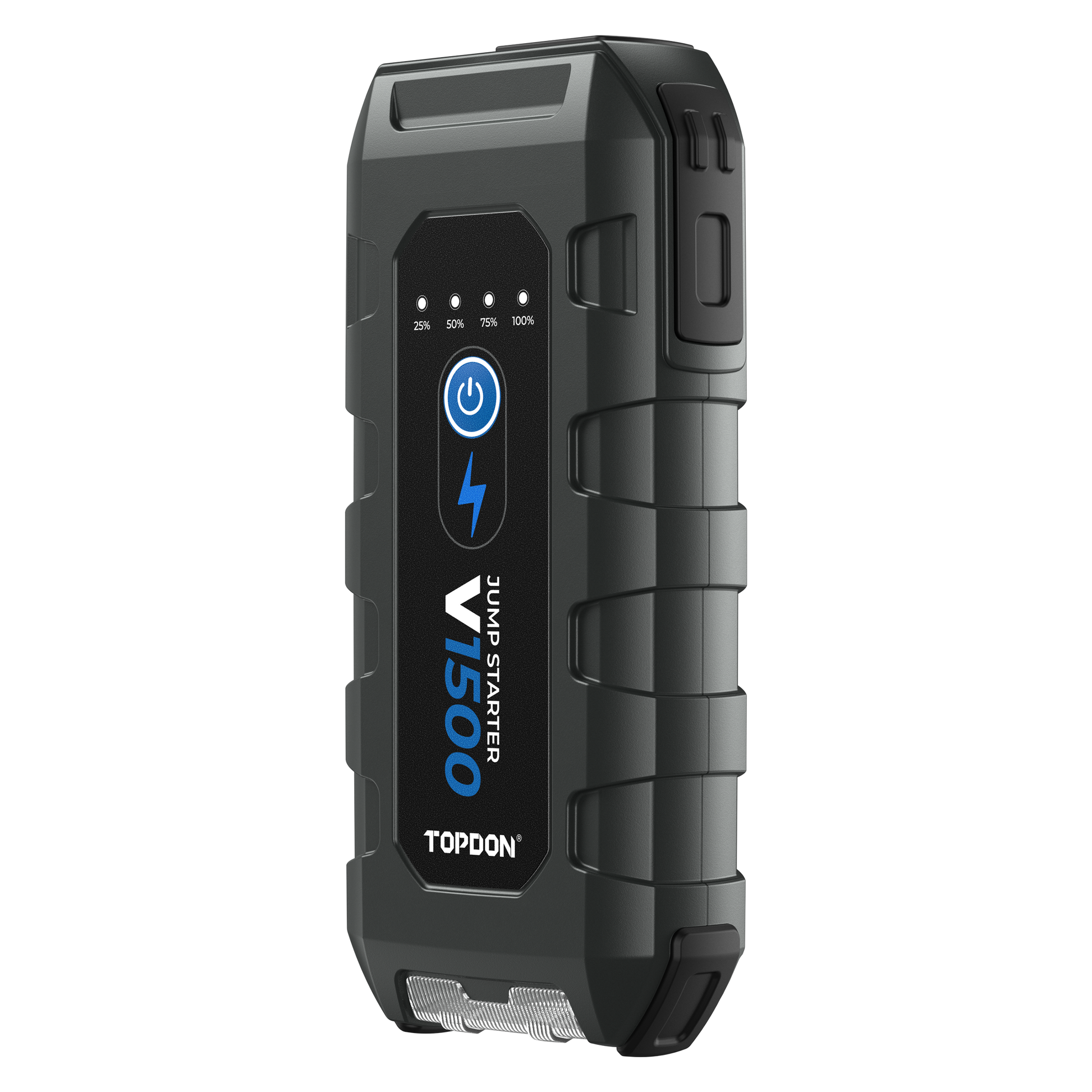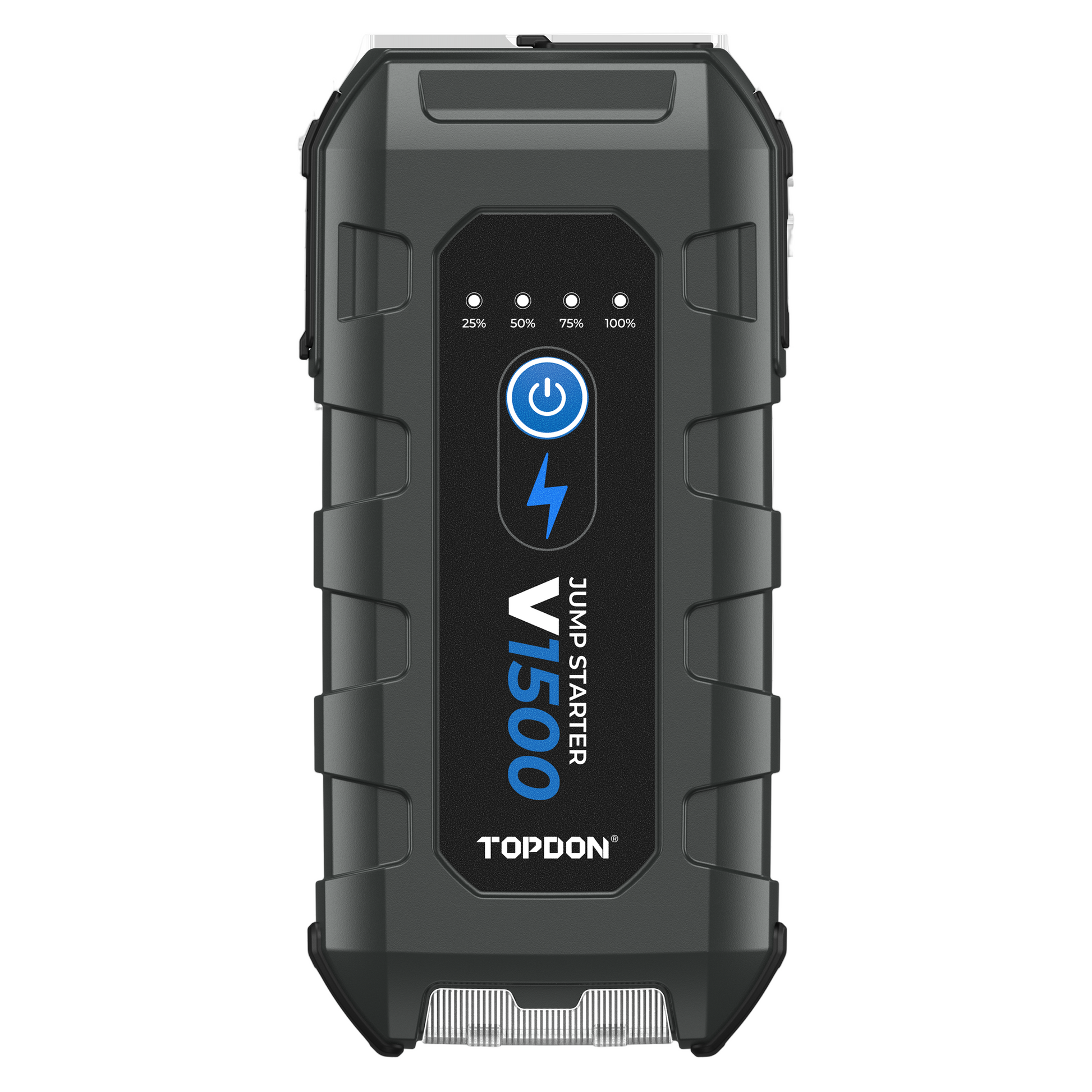 TOPDON's V1500 leads the way as a portable jump starter. Delivering 1500 peak amps for instant jump-starts. Quickly and safely jump 12V lead-acid batteries in seconds for cars, boats, motorcycles, and trucks with up to 6.5L gasoline or 4.0L diesel engines.