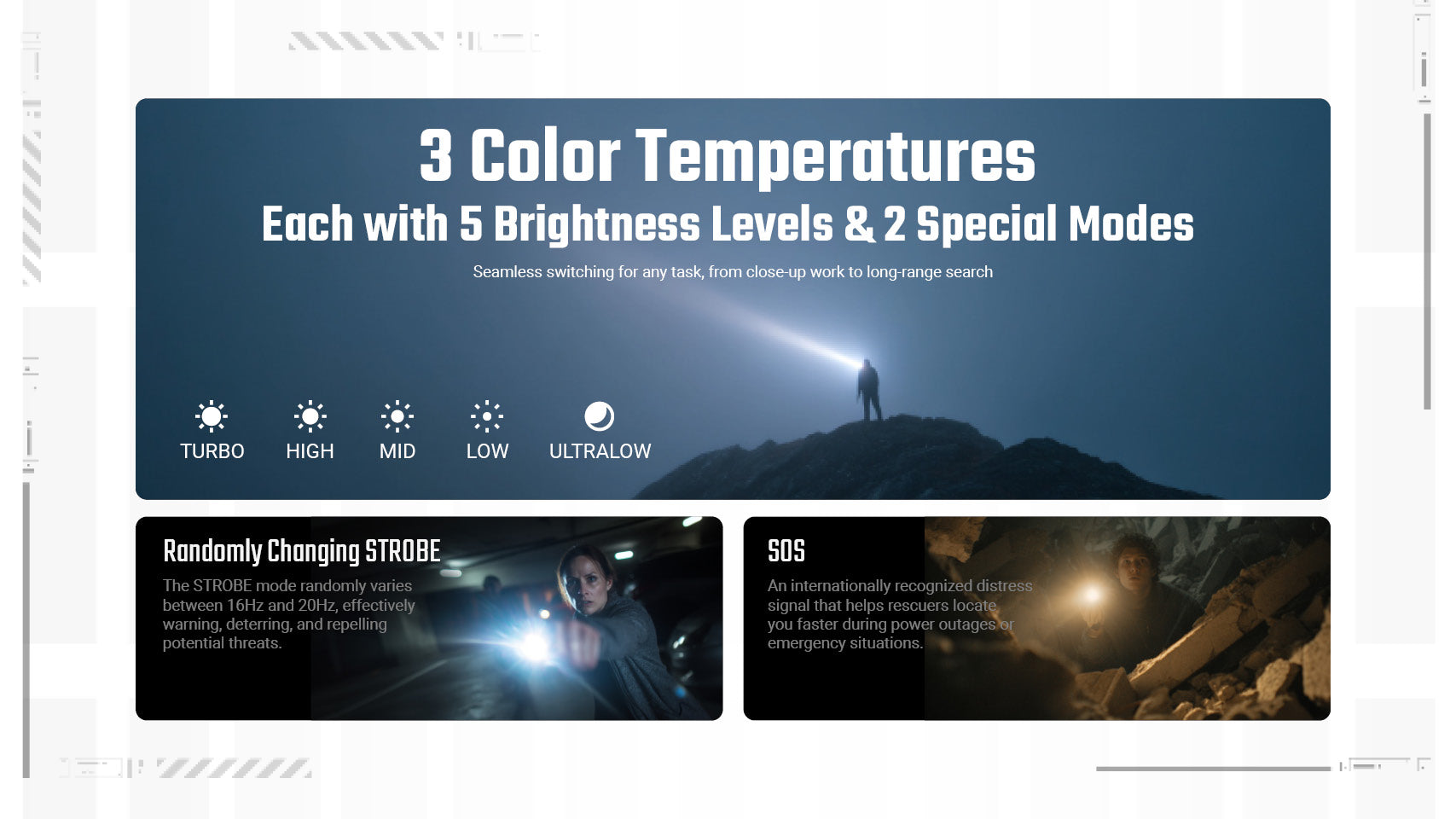 A triple color temperature system lets you choose the right light for the situation. Cool white provides crisp visibility for outdoor walks and longer distances, neutral white offers balanced illumination for everyday tasks around the house, and warm high-CRI light is easier on the eyes for nighttime use and close-up work. From quick chores to evening strolls, EDC07 adapts effortlessly to real-world scenarios.
