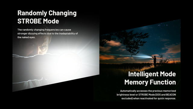 Powered by a high-capacity USB-C rechargeable 10,000mAh battery, the MH40 Pro provides up to 62 hours of runtime. It is also compatible with other batteries such as two 21700 cells for flexible power options. The flashlight will vibrate when the battery drops below 10%, and users can also check battery status with the LED indicator beneath the Mode button.