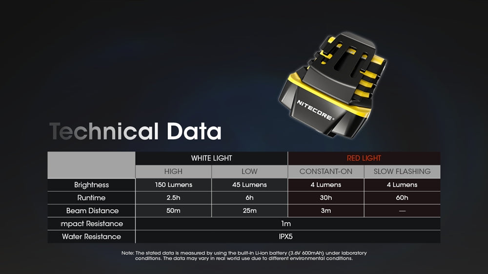 The Nitecore NU11 is an ideal clip-on cap light and headlamp for anyone in need of hands-free lighting, whether you're fishing, camping, hiking, jogging, or working. Capable of creating a wide-ranging lighting environment, the NU11 can produce up to 150 lumens, reaching distances of up to 55 yards. Once the IR sensor is activated, the NU11 can be turned on and off with a simple wave of the hand, allowing for completely hands-free use. Use the power button to adjust the brightness settings or switch to the Red Light mode. This mode is perfect for preserving your night vision when the light is in constant use, or you can switch to the flashing mode for a long-lasting signal light.