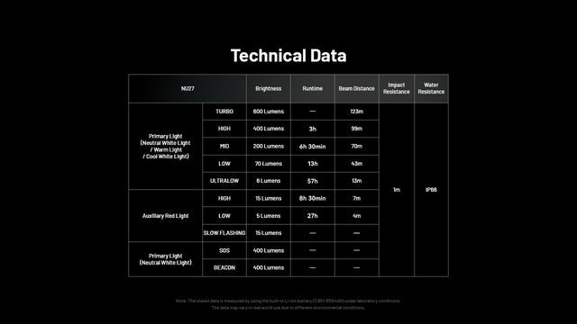 The Nitecore NU27 rechargeable headlamp is a versatile choice for camping, hiking, running, and outdoor activities. It delivers up to 600 lumens with a beam distance of 134 yards and features Multiple Color Temperature (MCT) LEDs, allowing you to switch between Warm (3000K), Neutral White (4500K), and Cool White (6500K) light. It also offers Red Light mode with Low, High, and Slow Flash options, plus SOS and Beacon modes for emergencies.