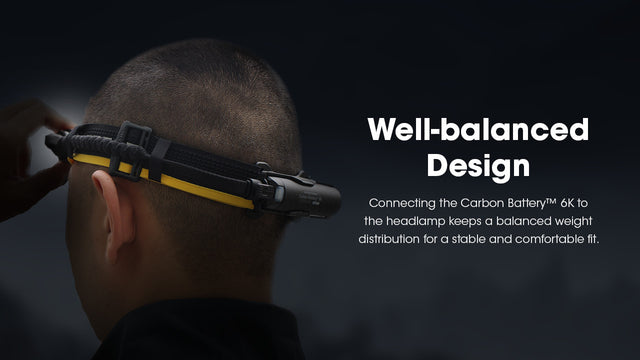 The Nitecore Carbon Battery 6K Kit doubles or triples the runtime of compatible headlamps, activating Performance Mode for brighter, longer illumination. It uses its own battery first before switching to the headlamp’s internal power.