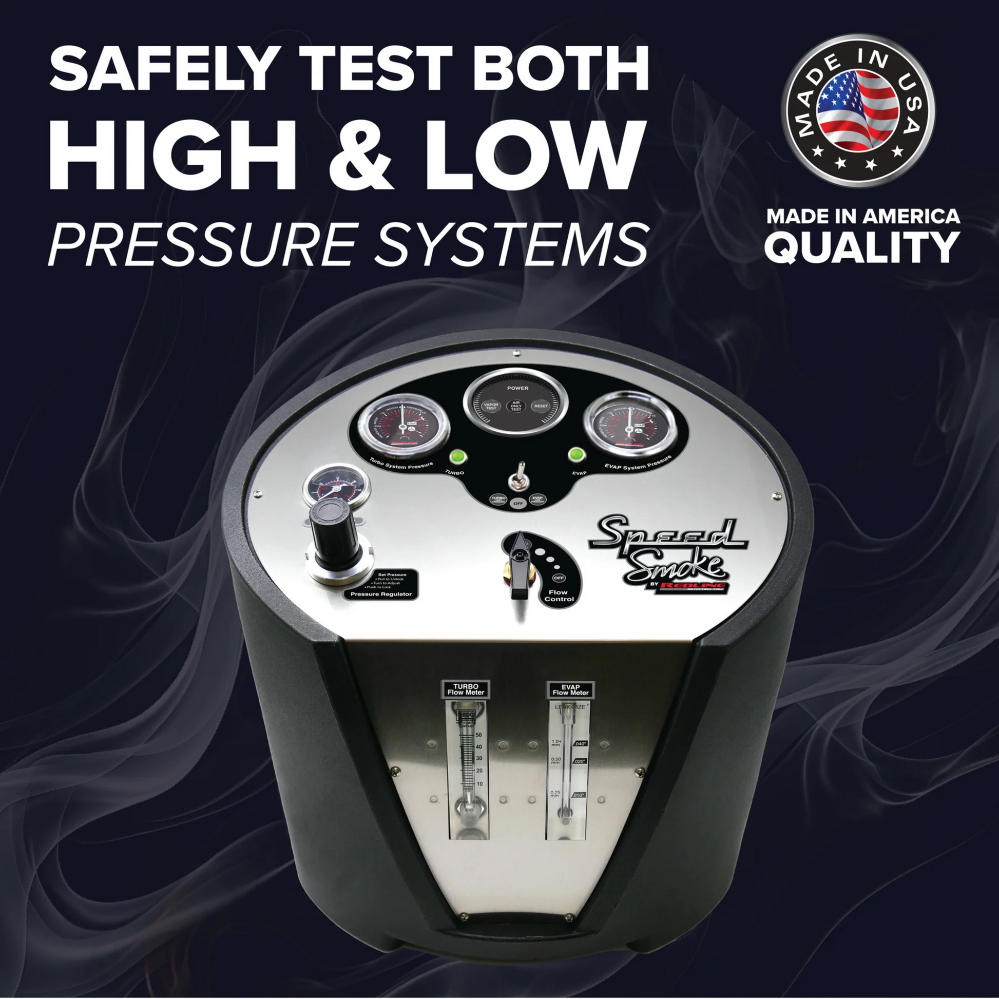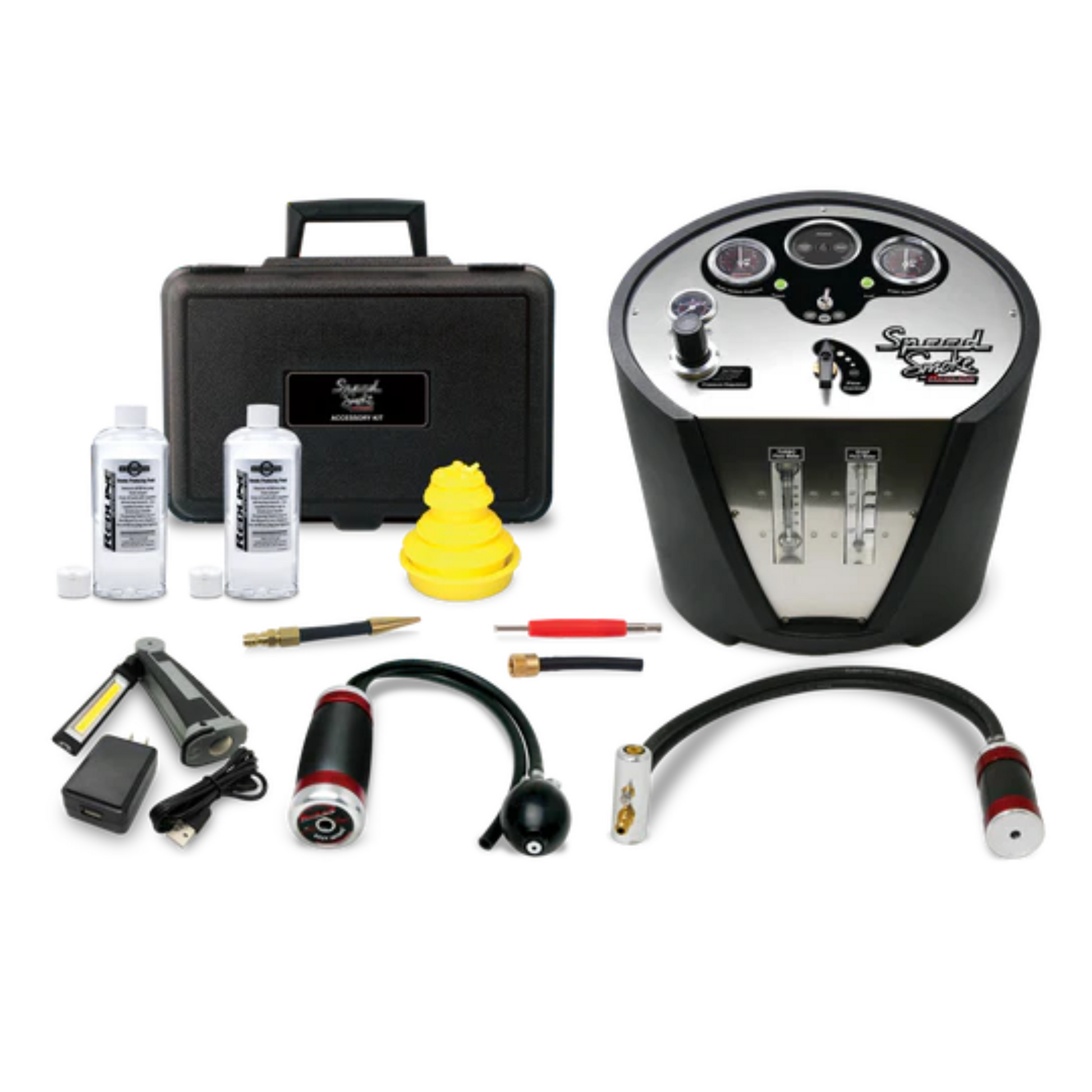 The SpeedSmoke by Redline is a high-performance diagnostic tool designed for professional automotive leak detection in turbo, boosted, and EVAP systems. Engineered for accuracy and efficiency, this unit delivers precise pressure control and flow monitoring to pinpoint leaks quickly. Built with advanced technology, it enhances diagnostic capabilities in automotive workshops, ensuring superior performance.